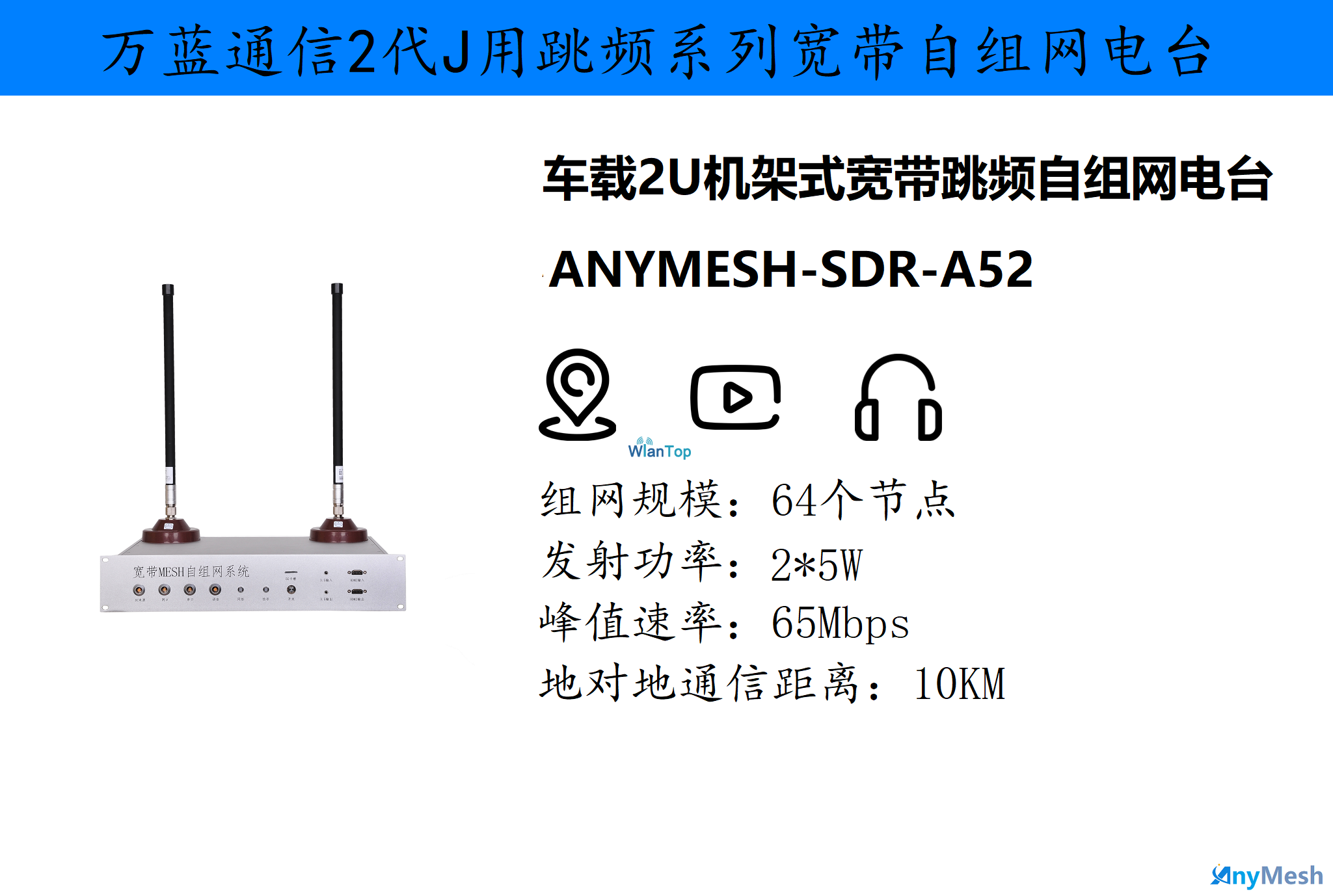 • ANYMESH-SDR-A52车载机架式宽带跳频大功率自组网电