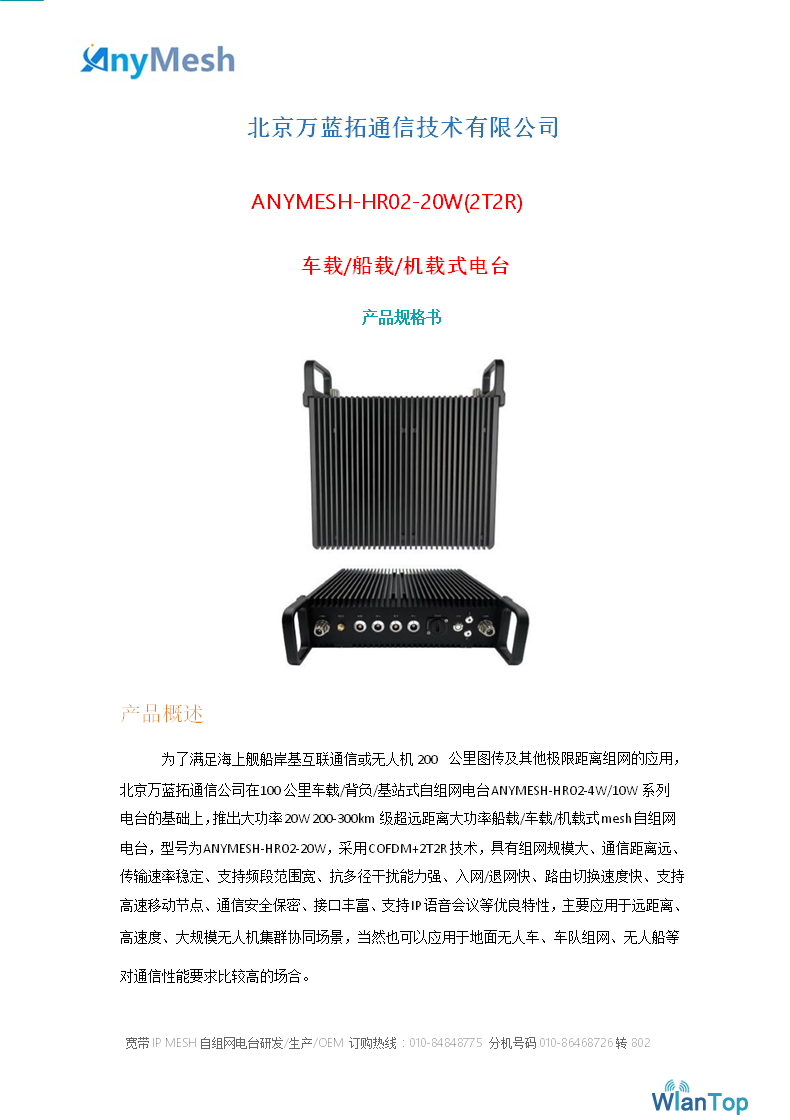 产品名称:ANYMESH-HR02-20W车载船载大功率电台 1.4GHz频段 带H