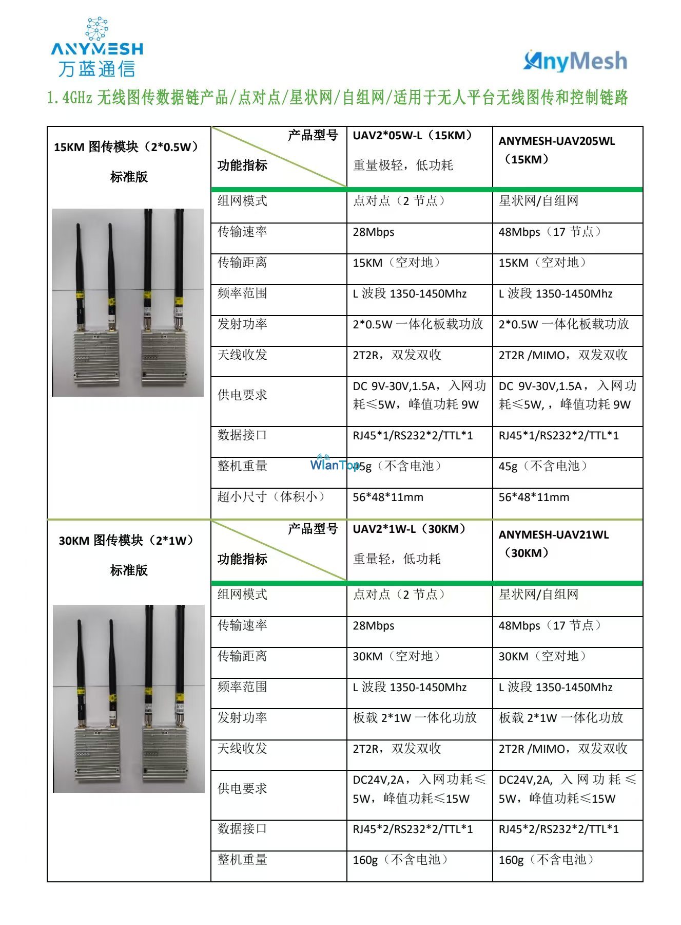 产品名称:万蓝ANYMESH-UAV标准版无人机图传数据链电台隆重上